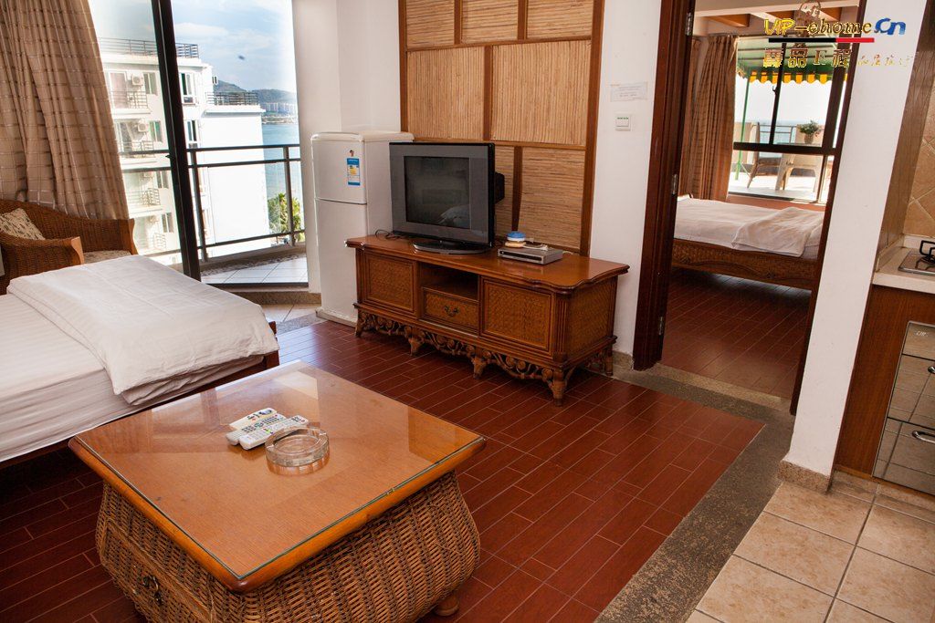 • 装修说明: 一线海景一房一厅180度观海.带空中花园遮阳伞,面积约80平米. 洗衣机、电视、空调、冰箱、热水器、燃气灶、消毒碗柜、有厨房;1.5米双人床,主卧1.5大床+1.2米小床,适合一家人多人入住,免费宽带。卫生间有淋浴房,开放式的厨房配有整体橱柜,松下灶台、抽油烟机,消毒碗柜等,天然气入户。在房间内可以享受到海的感觉。小区内环境优美,鸟语花香,中西餐厅,美景美食,尽情享用。