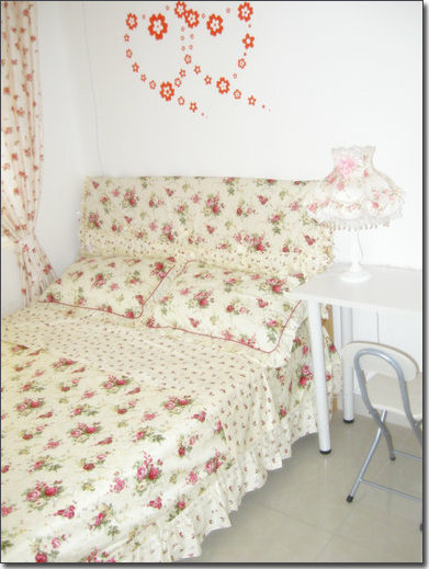 • 装修说明: 卧室配置:1500*2000橡木大床,床头柜,康佳液晶电视,美的空调,经典碎花四件套,,不锈钢晾衣架,电热水壶,无线网络。卫生间配置:太阳能热水器,吉事多花洒,浴巾、毛巾两套,淋浴露,洗发水,梳子,镜子