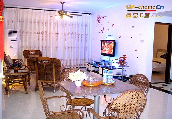 • 装修说明: 108平米,(独立免费无线宽带)。藤编实木家具配置。主卧1.8大床1张+1.2米一张,则卧1.5米大床1张,各卧室独立空调,46寸液晶电视,衣柜、。无敌海景阳台,阳台茶几;客厅配有立式空调、32寸液晶有线电视、豪华藤制沙发,自动洗衣机,电热水壶,电吹风。餐桌,微波炉,冰箱,橱柜、灶具、管道燃气。